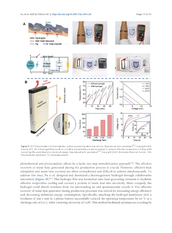 Elsevier B.V; (B) A hydrogel thermocell on a mobile phone battery is demonstrated to achieve effective evaporative cooling while