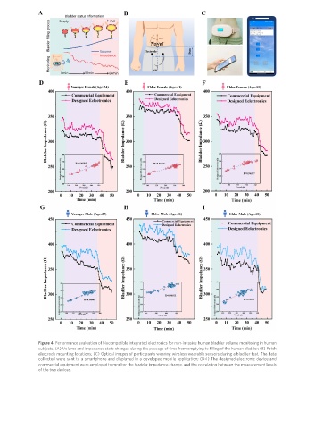 electrode mounting locations; (C) Optical images of participants wearing wireless wearable sensors during a bladder test. The data