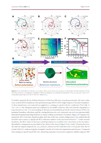 of the four absorbers; (G) Schematic illustration of the electromagnetic wave absorption mechanism of Zn 1-x Co 2-y Ni x Fe y O 4 . Panels (A-F)
