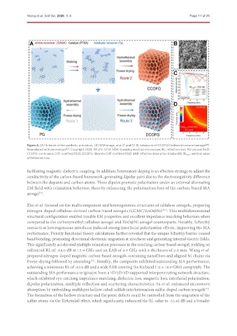 Figure 4. (A) Scheme of the synthetic procedure, (B) SEM image, and (C and D) RL behaviors of DCOFG3 hetero-structured aerogel [89] .