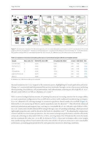 Figure 7. (A) Schematic diagram of the fabrication process, (B) microwave absorption performance, and (C) mechanism of 3D-printed