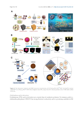 Figure 4. The fabrication methods and EMW absorption mechanisms of (A) Fe O @PPy/rGO [44] ; (B) FeCoNi@PPy derived