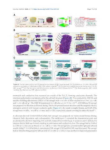 absorption mechanism of CoNi@carbon/ANF/CNF carbon composite [14] ; (B) The fabrication and EM absorption mechanism of Ti C T /