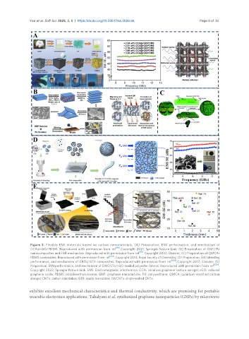 Figure 3. Flexible EMI materials based on carbon nanomaterials. (A) Preparation, EMI performance, and mechanism of