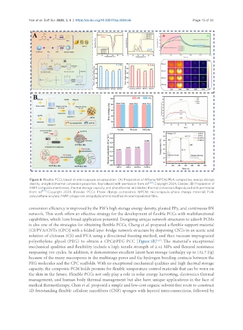Figure 4. Flexible PCCs based on microcapsule encapsulation. (A) Preparation of MXene/MPCM/PUA composites, energy storage