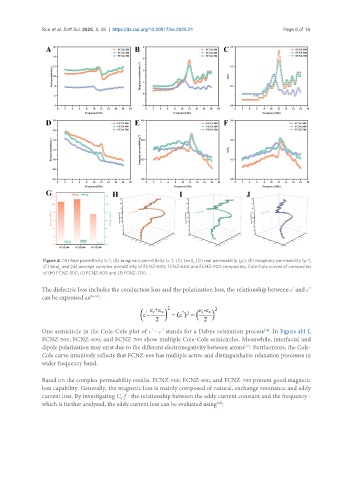(F) tanδ and (G) average complex permittivity of FCNZ-500, FCNZ-600 and FCNZ-700 composites; Cole-Cole curves of composites